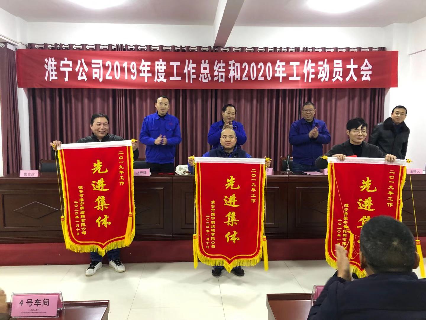 2020年1月10日,淮安市淮寧鋼結(jié)構(gòu)有限公司在本公司辦公樓一樓會議室召開了2019年度工作總結(jié)和2020年工作動員大會,從車間到管理層共有150余人參加了會議。會上首先有總經(jīng)理秦電文致新年賀詞,接著由董事長陳國寶先生代表公司作《2019年度工作總結(jié)和2020年工作動員報告》,他實事求是地總結(jié)了過去一年的工作,對存在的問題進行深入淺出地分析,并提出了新的一年的發(fā)展思路和年產(chǎn)鋼結(jié)構(gòu)3萬噸、實現(xiàn)銷售收入1億元、利稅2000萬元的奮斗目標(biāo)及5個方面的重點工作措施。會上還采取無記名投票方式差額選舉產(chǎn)生3個先進集體和24名優(yōu)秀員工,并對獲得“先進集體”和“優(yōu)秀員工”稱號的車間、部門、員工進行了表彰和獎勵,先進集體,優(yōu)秀員工代表作表態(tài)發(fā)言,整個會議歷時兩小時三十分鐘,會議全過程始終洋溢著振奮、熱烈、愉快的氣氛。會議結(jié)束后,全體參會員工參加了公司舉辦的晚宴。